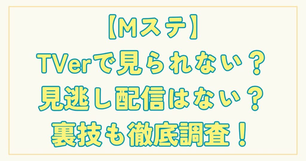 【Mステ】TVerで見られない?見逃し配信はない?裏技も徹底調査!