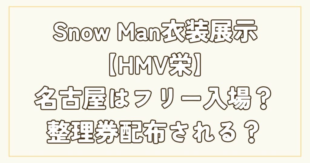 Snow Man衣装展示【HMV栄】名古屋はフリー入場?整理券配布される?